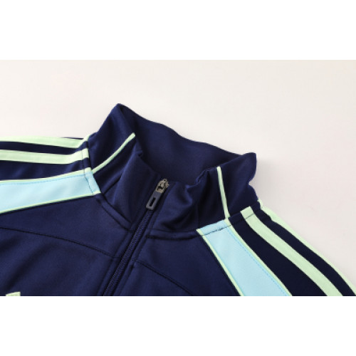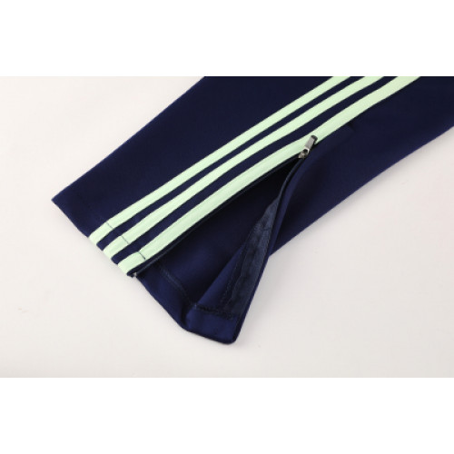 Спортивный костюм «Аякс» сезона 2025/26 в синем исполнении — это тренировочная экипировка, которая традиционно сочетает в себе амстердамский стиль и передовые технологии немецкого бренда. Основные характеристики Цвет: Глубокий темно-синий с контрастными деталями в цвете «светло-голубой». Материал:(100% переработанный полиэстер). Ткань плотная, но дышащая, устойчивая к зацепкам. Материал эффективно впитывает влагу и быстро сохнет, поддерживая комфортную температуру тела во время разминки или прогулки. Дизайн: На груди и бедрах расположены вышитые эмблема клуба (с тремя звездами) и логотип. По бокам — легендарные три полоски.
