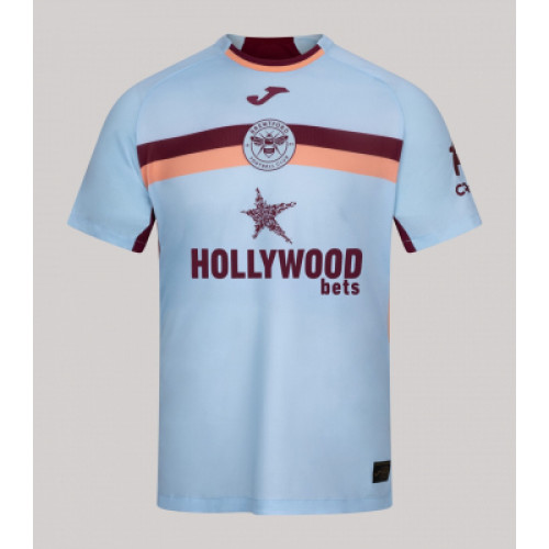 Брентфорд футболка резервная 2025/26 Резервная футболка «Брентфорда» сезона 2025/26 выделяется свежим небесно-голубым цветом, который разбавлен горизонтальной полосой в бордово-оранжевых тонах. Такое сочетание придаёт форме современный и динамичный вид, сохраняя при этом связь с фирменной айдентикой клуба. Технологичный материал обеспечивает оптимальную вентиляцию и комфорт даже при активных нагрузках. Благодаря лёгкости ткани футболка не сковывает движений, что делает её удобной как для игры, так и для повседневного ношения. На груди расположены клубный герб, логотип Joma и спонсорская надпись, подчёркивающие подлинность экипировки и её прямую принадлежность к Английской Премьер-лиге. На спине под воротником нанесён год основания клуба — 1889, как знак уважения к истории «пчёл». Этот вариант формы прекрасно подходит тем болельщикам, которые ценят стиль и стремятся выделиться, поддерживая команду в каждом матче.