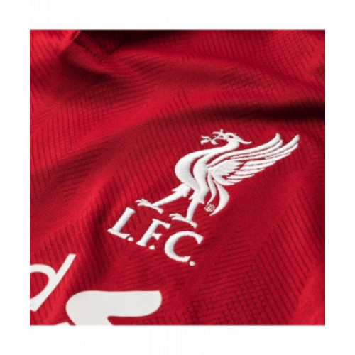 Футболка с коротким рукавом английского ФК Ливерпуль, домашняя, для игр сезона 2018/19. Футболка однотонная насыщенного темно красного цвета, детали белого цвета, украшена эмблемой клуба.
