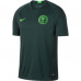 Футболка с коротким рукавом нигерийской футбольной сборной, гостевая, для игр сезона 2018/19. Дизайн футболки сборной Нигерии до безобразия лаконичен: общий фоновый цвет – что-то среднее между «зелёным мхом» и «болотом» и только эмблемы федерации и Nike выполнены в «гусеничном цвете».