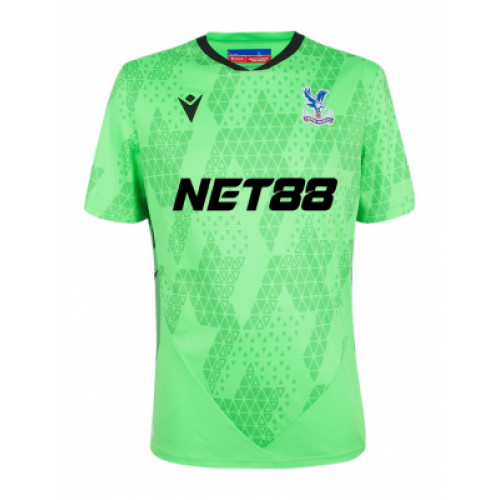 Кристал Пэлас футболка вратарская 2025/26 Вратарская футболка «Кристал Пэлас» сезона 2025/26 представлена в ярком зелёном цвете, который обеспечивает отличную видимость на поле. Геометрический узор из треугольников добавляет динамики и подчёркивает современный стиль экипировки. На груди размещены клубный герб, логотип производителя и спонсорская надпись NET88, а под воротником сзади — эмблема «орлов», символизирующая клубную принадлежность. Контрастный чёрный воротник завершает дизайн и придаёт форме аккуратность. Футболка изготовлена из лёгкого технологичного материала, обеспечивающего вентиляцию и комфорт в условиях высокой нагрузки. Она идеально подходит для матчей и тренировок, позволяя вратарям сохранять свободу движений и уверенность в игре.