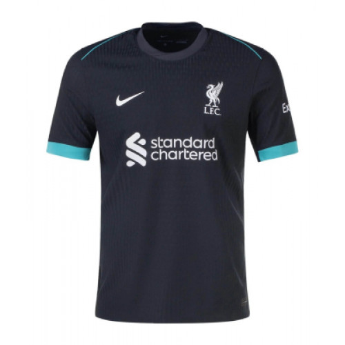 Ливерпуль футболка предсезонная 2025/26 Предсезонная футболка «Ливерпуль» сезона 2025/26 выполнена в тёмно-графитовом цвете с бирюзовыми акцентами на рукавах и плечах, что придаёт форме свежий и современный вид. Такой дизайн подчеркивает стиль команды даже в тренировочный и подготовительный период. На груди размещены клубный герб «Ливерпуля», эмблема Nike и спонсорская надпись Standard Chartered, которые гармонично сочетаются с минималистичной цветовой гаммой. Футболка изготовлена из лёгкой дышащей ткани с использованием технологии Dri-FIT, которая эффективно отводит влагу и обеспечивает комфорт даже при интенсивных нагрузках. Классический прямой крой позволяет сохранять свободу движений, что особенно важно во время тренировок и товарищеских матчей. Эта форма идеально подойдёт для болельщиков, которые хотят поддерживать клуб в межсезонье и выглядеть в стиле команды на любом событии.