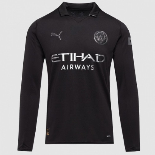 Футболка выполнена в черном цвете с добавлением серебристых элементов и дополнен воротником с белой окантовкой.Ключевые характеристики: Материал: Высококачественный, легкий полиэстер с технологией отвода влаги. Дизайн: Выполнен в современном или винтажном стиле (в зависимости от конкретного дизайна комплекта), отличный от небесно-голубого домашнего цвета. Рукава: Длинные, часто с манжетами для плотной посадки. Назначение: Идеальна для игры, тренировок или повседневного ношения в стиле стритвир.