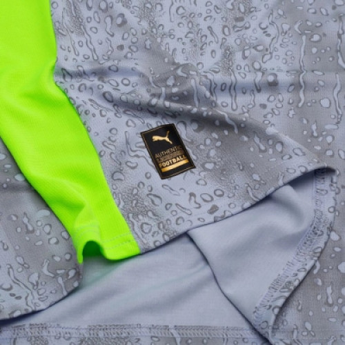 Новая третья форма «Манчестер Сити» 2025-2026 выполнена в сером цвете с ярко-салатовыми вставками и принтом в виде капель. Дизайн формы вдохновлен манчестерскими дождями.Ключевые характеристики: Материал: Высококачественный, легкий полиэстер с технологией отвода влаги. Дизайн: Выполнен в современном или винтажном стиле (в зависимости от конкретного дизайна 3-го комплекта), отличный от небесно-голубого домашнего цвета. Рукава: Длинные, часто с манжетами для плотной посадки. Назначение: Идеальна для игры, тренировок или повседневного ношения в стиле стритвир.