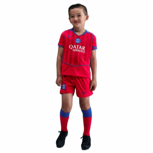 Детская резервная (третья) форма «Пари Сен-Жермен» на сезон 2025/26 — это возвращение к историческому красному цвету в сочетании с культовым дизайном начала 2000-х. Дизайн и вдохновение Цветовая гамма: Основной цвет —красный с контрастными темно-синими элементам. Это долгожданное возвращение красной основы, которую фанаты запрашивали несколько лет. Стиль Total 90: Центральное расположение эмблемы клуба и логотипа. Асимметричные изогнутые линии и окантовка на плечах и рукавах. Тонкие вертикальные полоски на передней части футболки. Материалы: 100% полиэстер, который отводит пот и обеспечивает комфорт во время активных игр. Детали: Эластичный пояс на шортах для удобной посадки. Сетчатые вставки для дополнительной вентиляции. Вышитые логотипы.