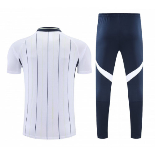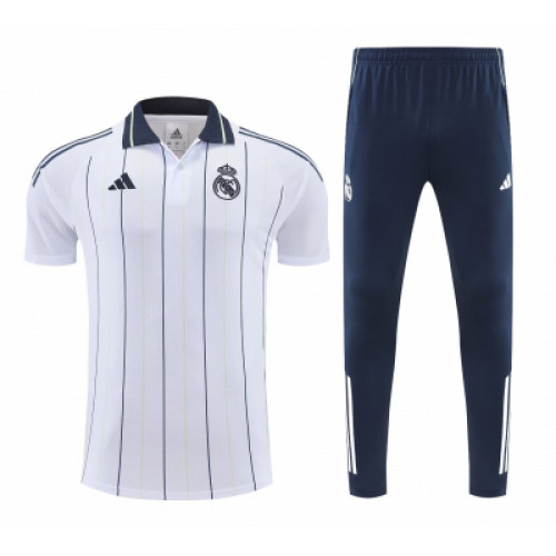 Спортивный костюм «Реал Мадрид» сезона 2025/2026 в бело-черном исполнении с воротником-поло — это премиальная модель из лайфстайл-линейки, сочетающая элегантность классической рубашки и комфорт тренировочной формы. Дизайн и стиль Цвет: Основной белый с глубокими черными акцентами. Верх (Поло): Элегантный отложной воротник на пуговицах. Это делает костюм универсальным: в нем можно не только тренироваться, но и посещать официальные мероприятия или гулять по городу.