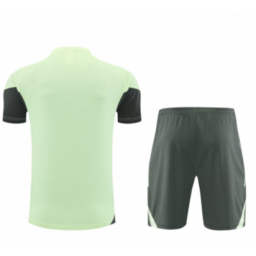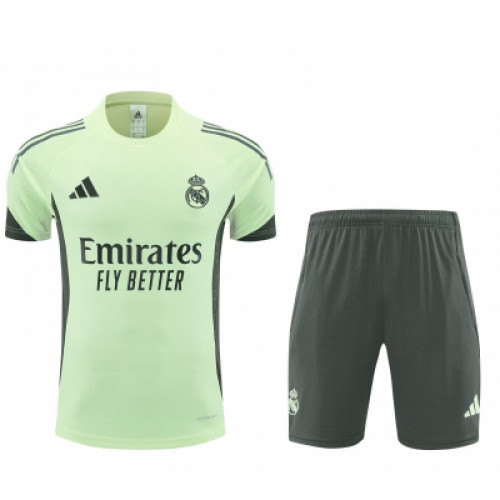 Тренировочный костюм Реал Мадрид сезона 2025/26 в салатово-черном исполнении — это один из самых ярких и технологичных комплектов в новой коллекции клуба. Данная модель предназначена для тренировок в теплое время года и подготовки к вечерним матчам. Основные характеристики Комплектация: Включает легкую тренировочную футболку и спортивные шорты. Цветовая гамма: Основной цвет верха — салатовый , дополненный черными или темно-серыми деталями. Шорты выполнены в контрастном черном цвете с салатовыми вставками. Технологии: Использование материала с технологией AEROREADY, которая эффективно впитывает влагу и обеспечивает охлаждение кожи во время интенсивных нагрузок