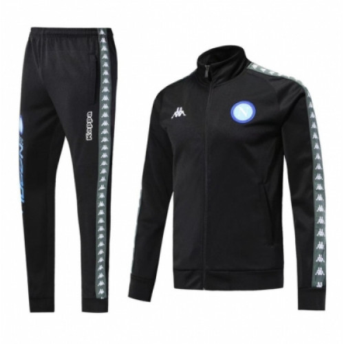 Тренировочный костюм с длинным рукавом ФК Наполи. Для тренировок сезона 2018/19. Олимпийка черного цвета. На груди эмблема клуба. Штаны выполнены в черном цвете, на правом бедре эмблема клуба. Купить с доставкой по РФ.