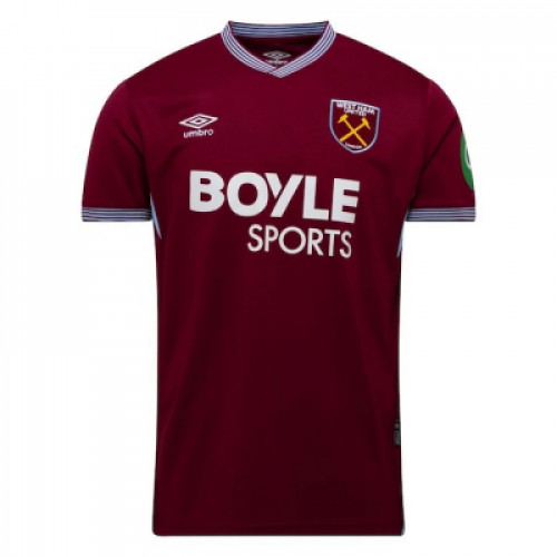 Новая домашняя форма «Вест Хэм Юнайтед» на сезон 2025-2025 выполнена в бордовом цвете с полосатыми бордово-голубыми манжетам и воротником. Дополняют образ голубые вставки по бокам. Погрузитесь в мир футбольного энтузиазма и покажите свою любовь к футболу с нашей стильной мужской футболкой, которая создана для настоящих фанатов! Если ты — преданный поклонник Вест Хэма то эта футбольная футболка станет отличным дополнением к твоему гардеробу. Яркий дизайн и высококачественные материалы делают её идеальным выбором как для матчей, так и для повседневной носки.